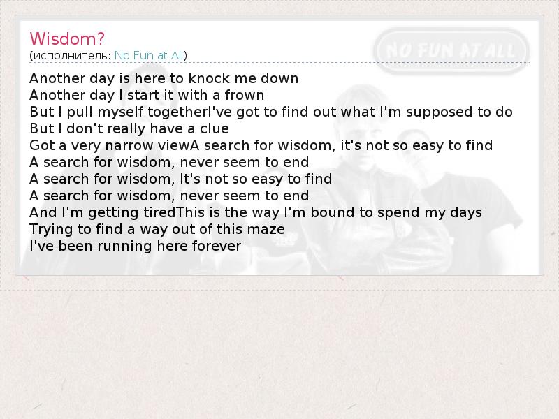 А как ты думаешь, о чем песня "Wisdom?" ?