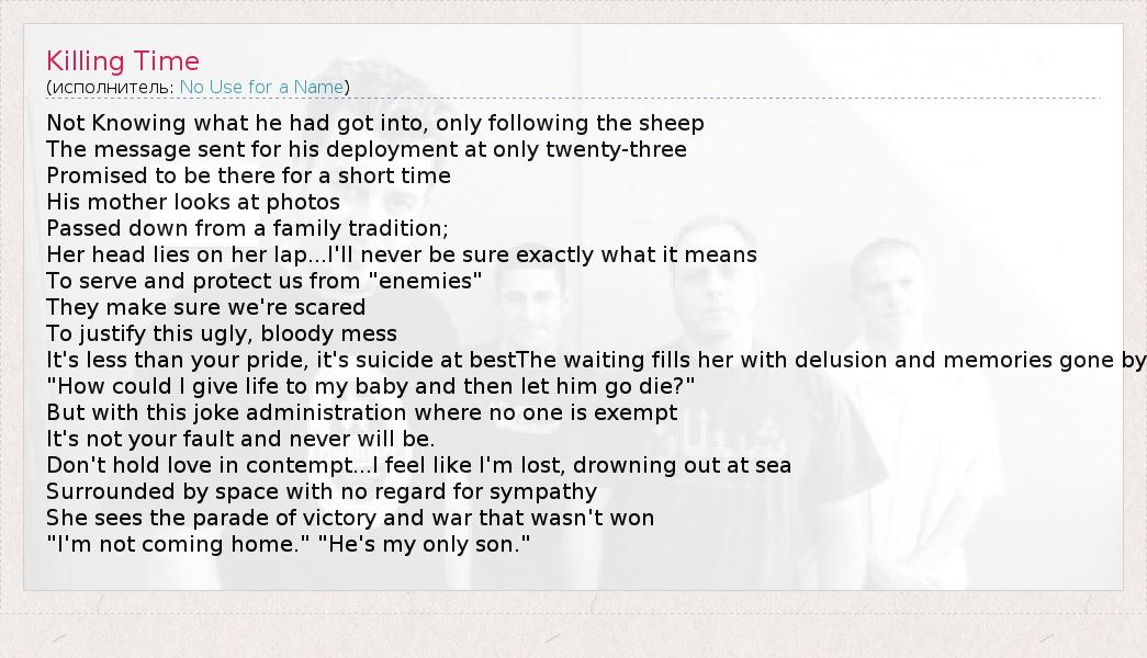А как ты думаешь, о чем песня "Killing Time" ?