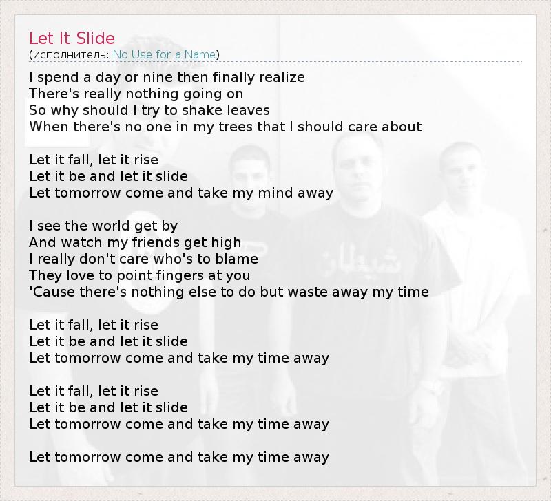 А как ты думаешь, о чем песня "Let It Slide" ?