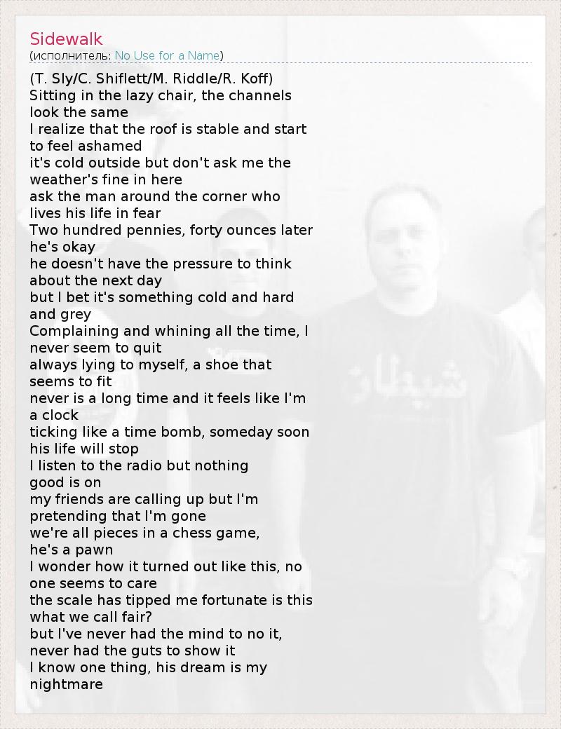 А как ты думаешь, о чем песня "Sidewalk" ?