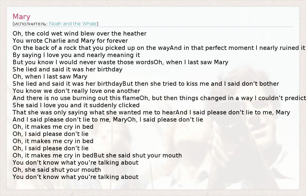 That she was only saying what she wanted me to hearAnd I said please don't lie to me, Mary