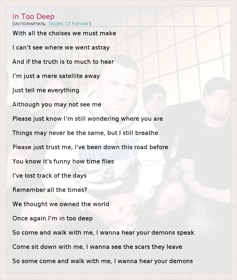 А как ты думаешь, о чем песня "In Too Deep" ?