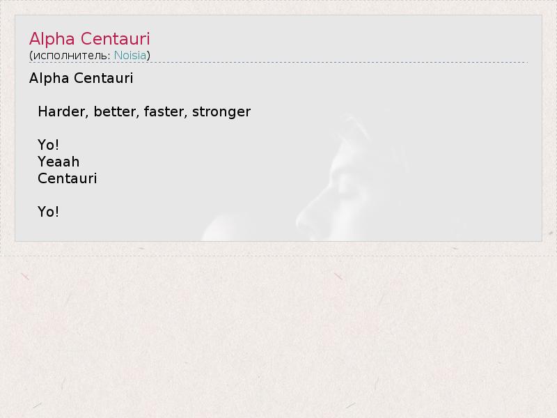 А как ты думаешь, о чем песня "Alpha Centauri" ?
