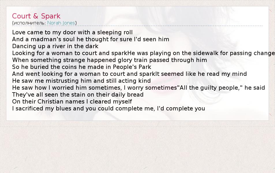 А как ты думаешь, о чем песня "Court & Spark" ?