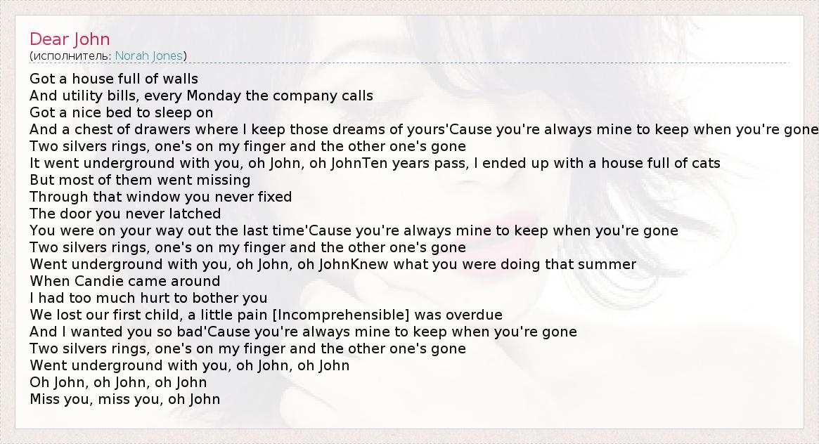 It went underground with you, oh John, oh JohnTen years pass, I ended up with a house full of cats