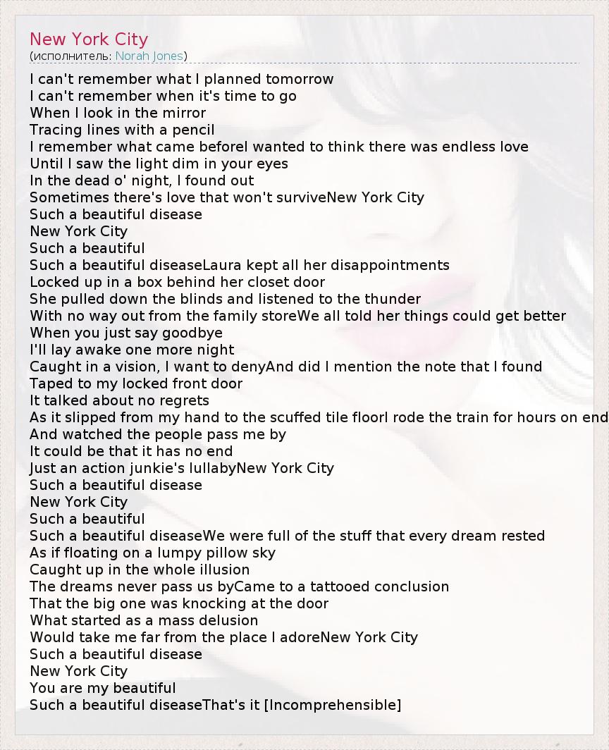 А как ты думаешь, о чем песня "New York City" ?