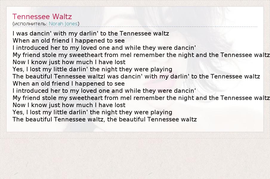 А как ты думаешь, о чем песня "Tennessee Waltz" ?