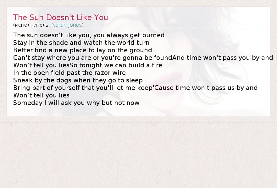 ГлавнаяИсполнителиNorah JonesThe Sun Doesn't Like You