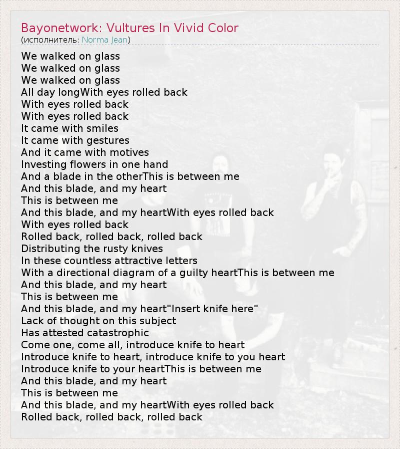 ГлавнаяИсполнителиNorma JeanBayonetwork: Vultures In Vivid Color