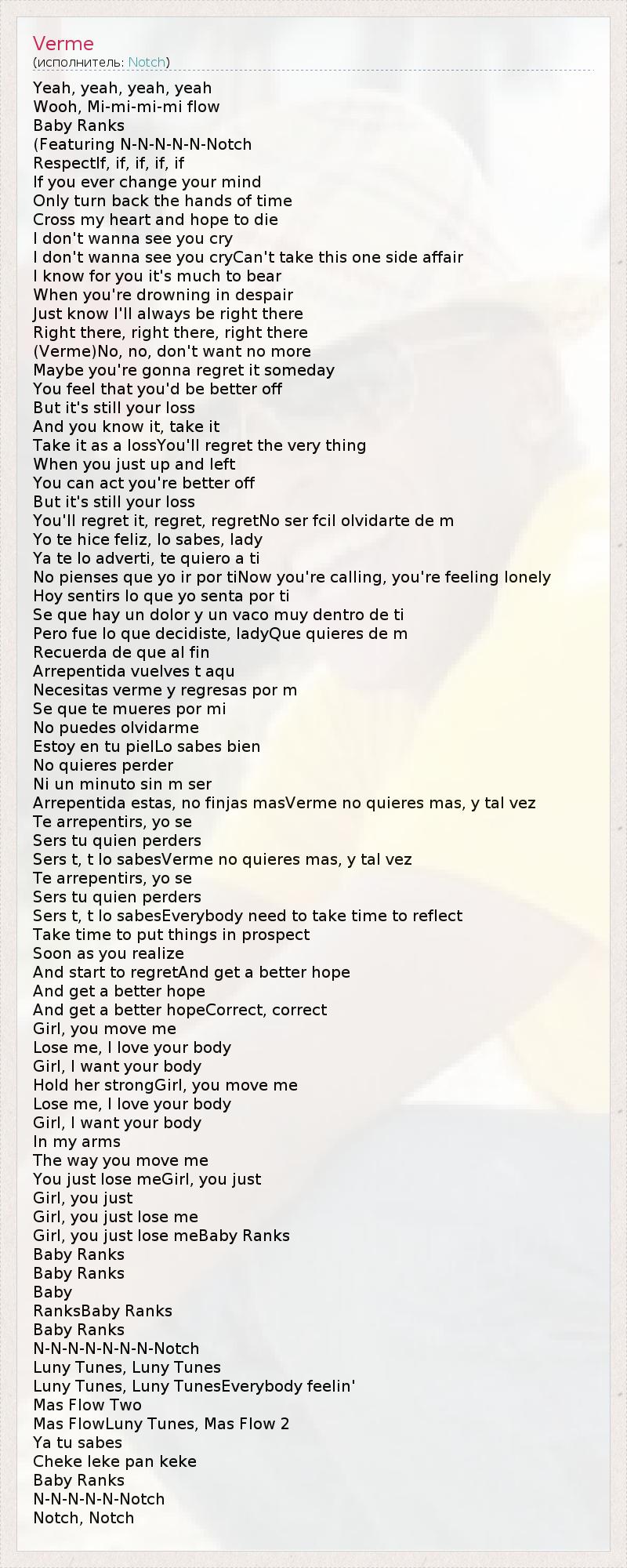 Arrepentida estas, no finjas masVerme no quieres mas, y tal vez
