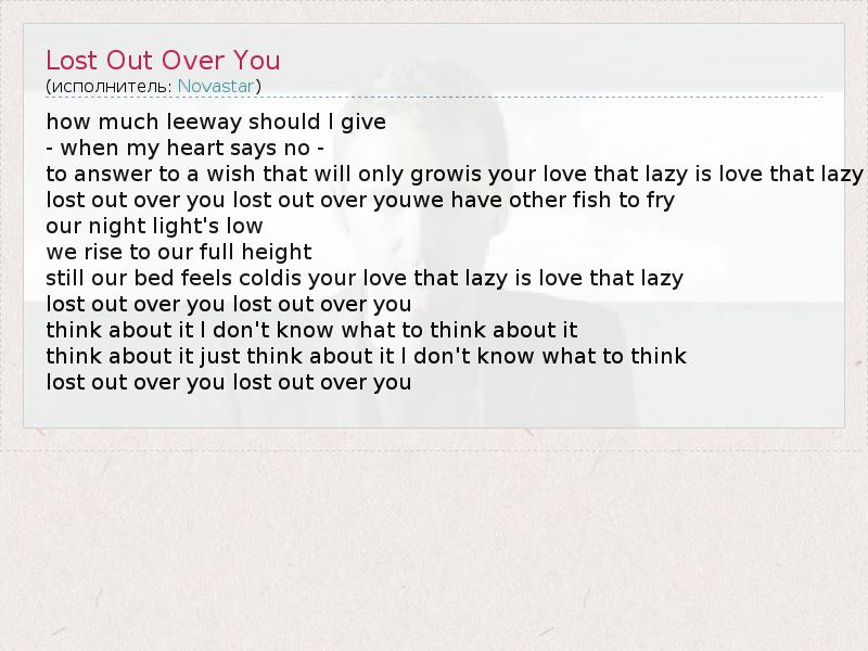 А как ты думаешь, о чем песня "Lost Out Over You" ?