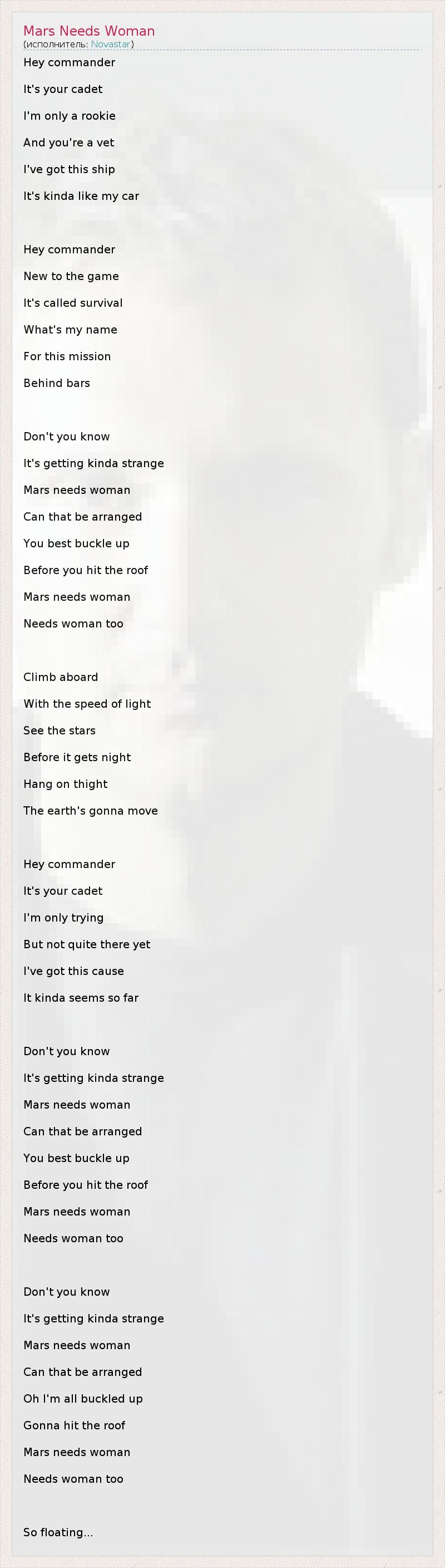 А как ты думаешь, о чем песня "Mars Needs Woman" ?
