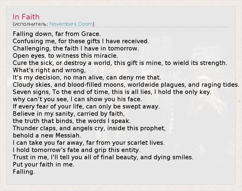А как ты думаешь, о чем песня "In Faith" ?