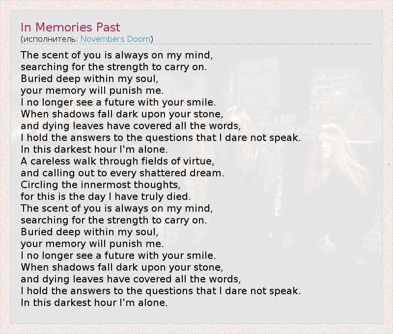 А как ты думаешь, о чем песня "In Memories Past" ?