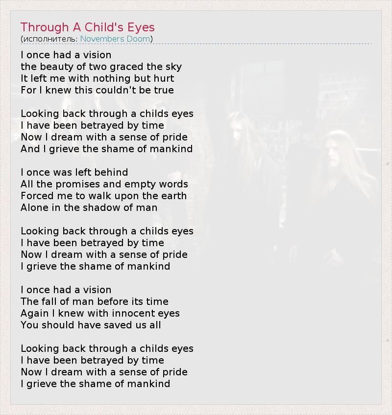 А как ты думаешь, о чем песня "Through A Child's Eyes" ?