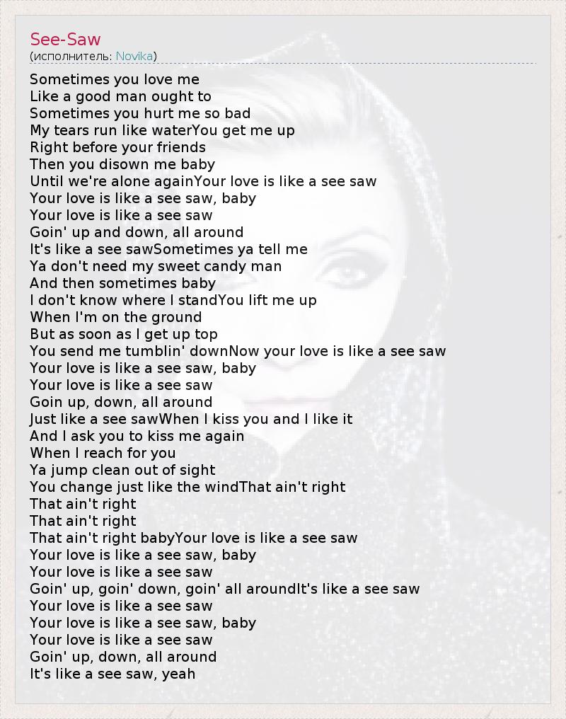 Goin' up, goin' down, goin' all aroundIt's like a see saw