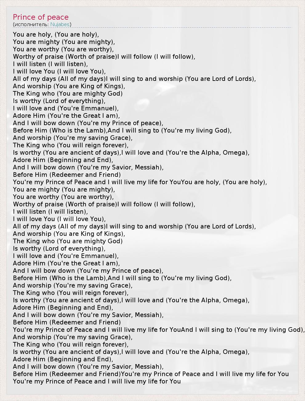 А как ты думаешь, о чем песня "Prince of peace" ?