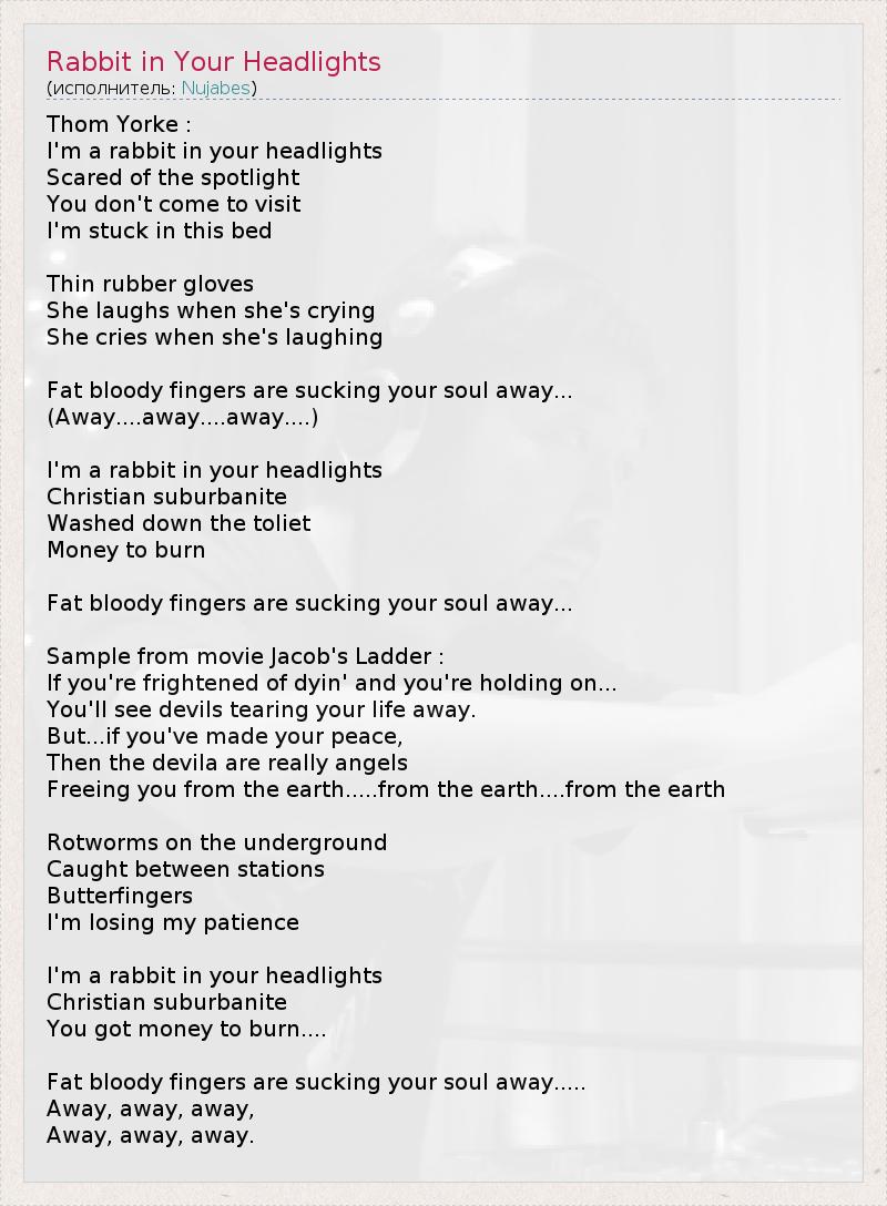 А как ты думаешь, о чем песня "Rabbit in Your Headlights" ?