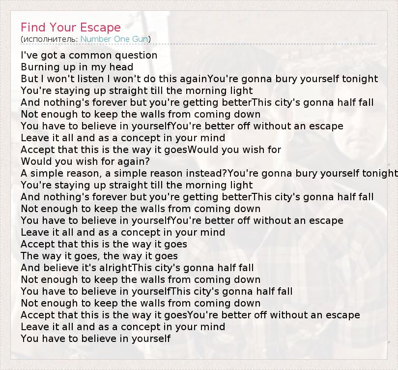 А как ты думаешь, о чем песня "Find Your Escape" ?