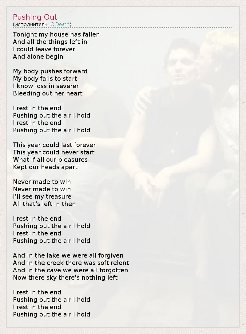А как ты думаешь, о чем песня "Pushing Out" ?