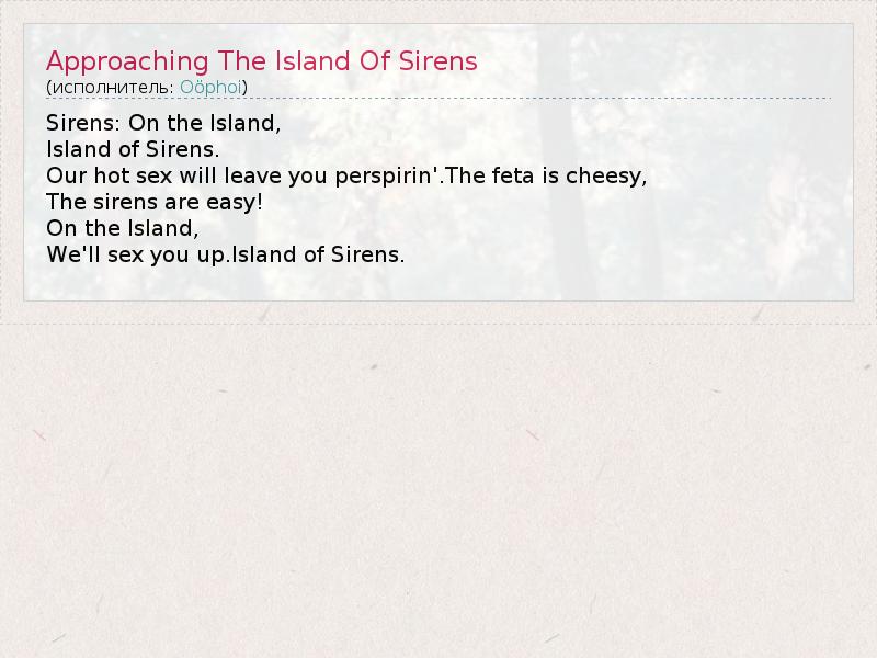 А как ты думаешь, о чем песня "Approaching The Island Of Sirens" ?