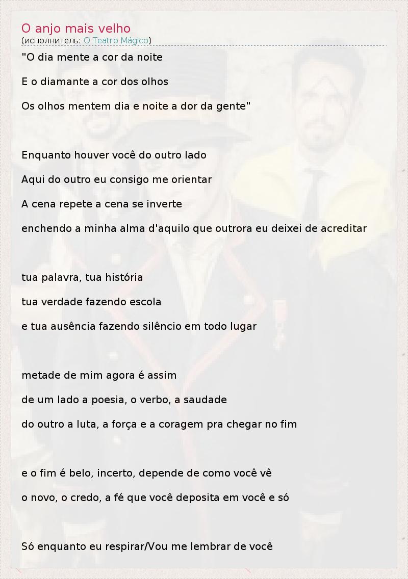 А как ты думаешь, о чем песня "O anjo mais velho" ?