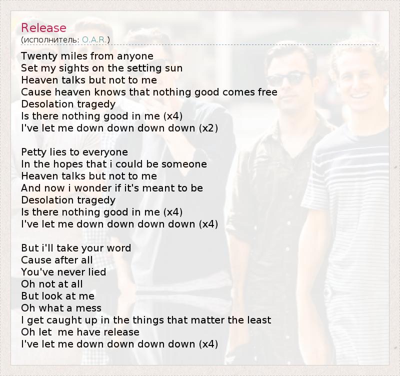 Это интересно:Американская рок-группа O.A.R. была образована в 1996 году и с тех пор радует своих поклонников качественным роком. На счету группы уже семь полноценных студийных альбомов, и она не собирается останавливаться на достигнутом. Первые два альбома группы были не особо тепло восприняты публикой и критиками, но уже после третьего альбома, вышедшего в 2001 году, к группе пришла популярность. Интересным... продолжение