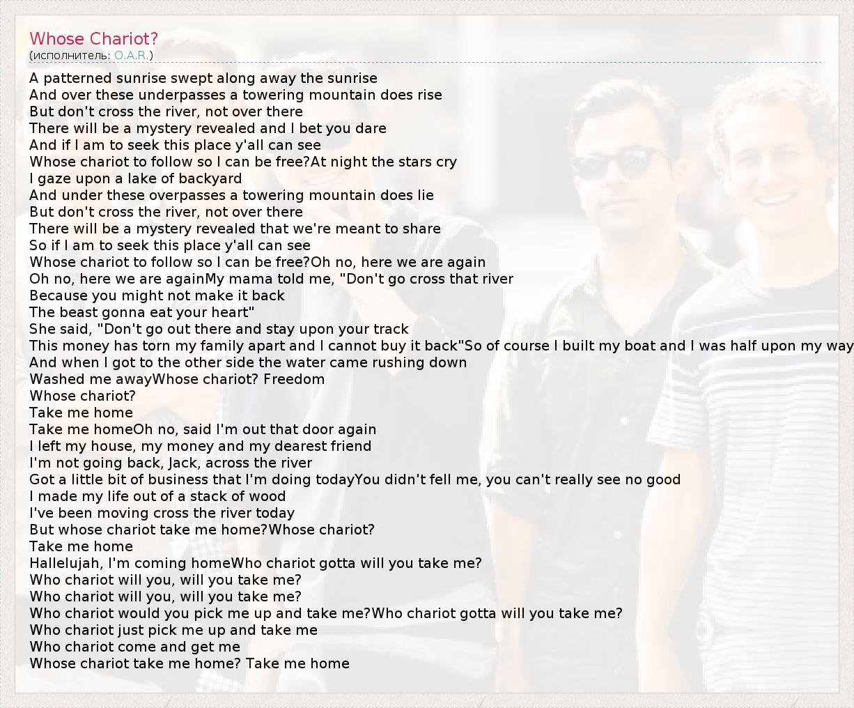 А как ты думаешь, о чем песня "Whose Chariot?" ?