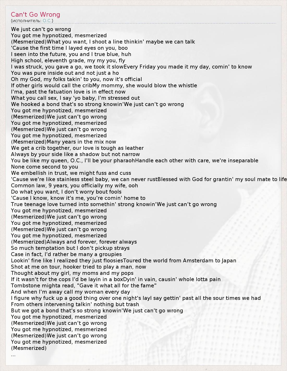 А как ты думаешь, о чем песня "Can't Go Wrong" ?