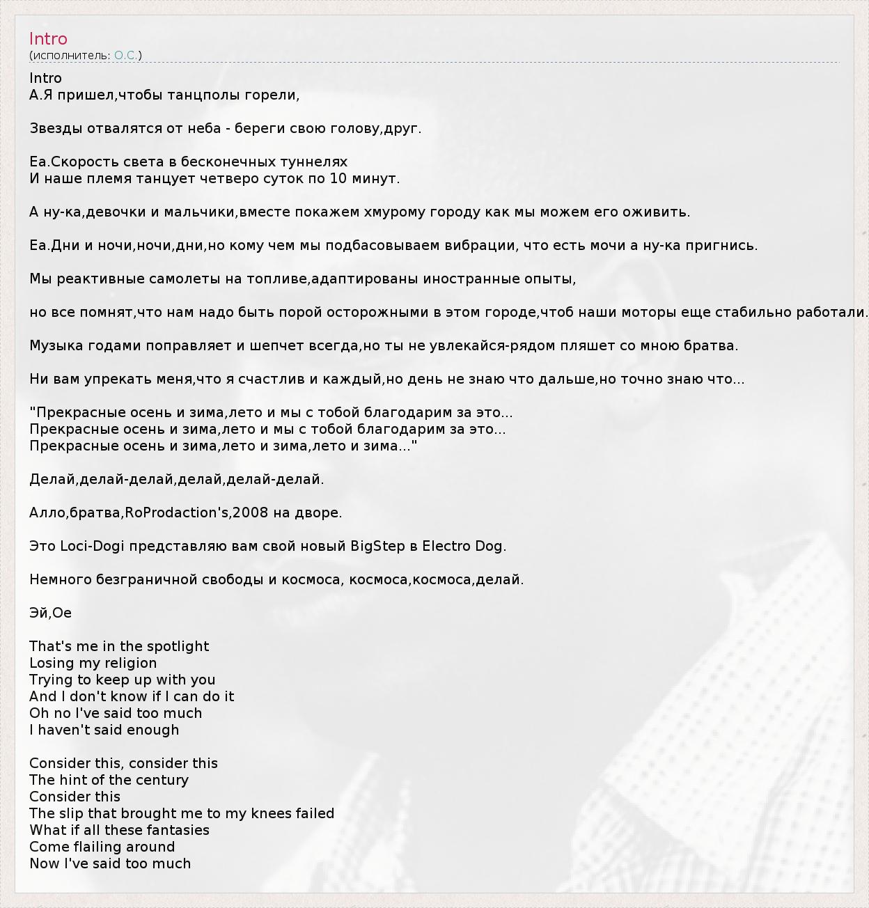 Loc-Dog - iNTRO - Текст песни, слушать онлайн Loc-Dog - iNTRO - Текст песни, слушать онлайн
