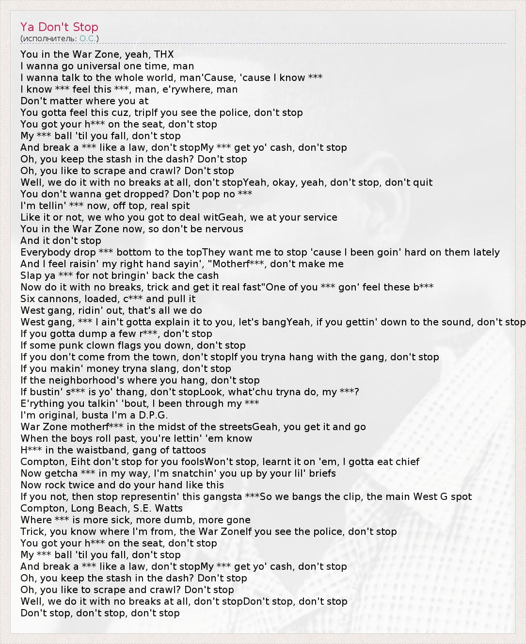 А как ты думаешь, о чем песня "Ya Don't Stop" ?