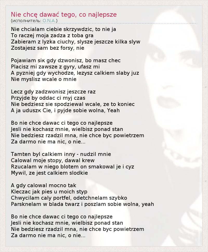 ГлавнаяИсполнителиO.N.A.Nie chcę dawać tego, co najlepsze
