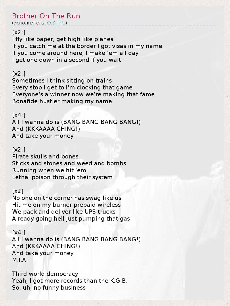 А как ты думаешь, о чем песня "Brother On The Run" ?