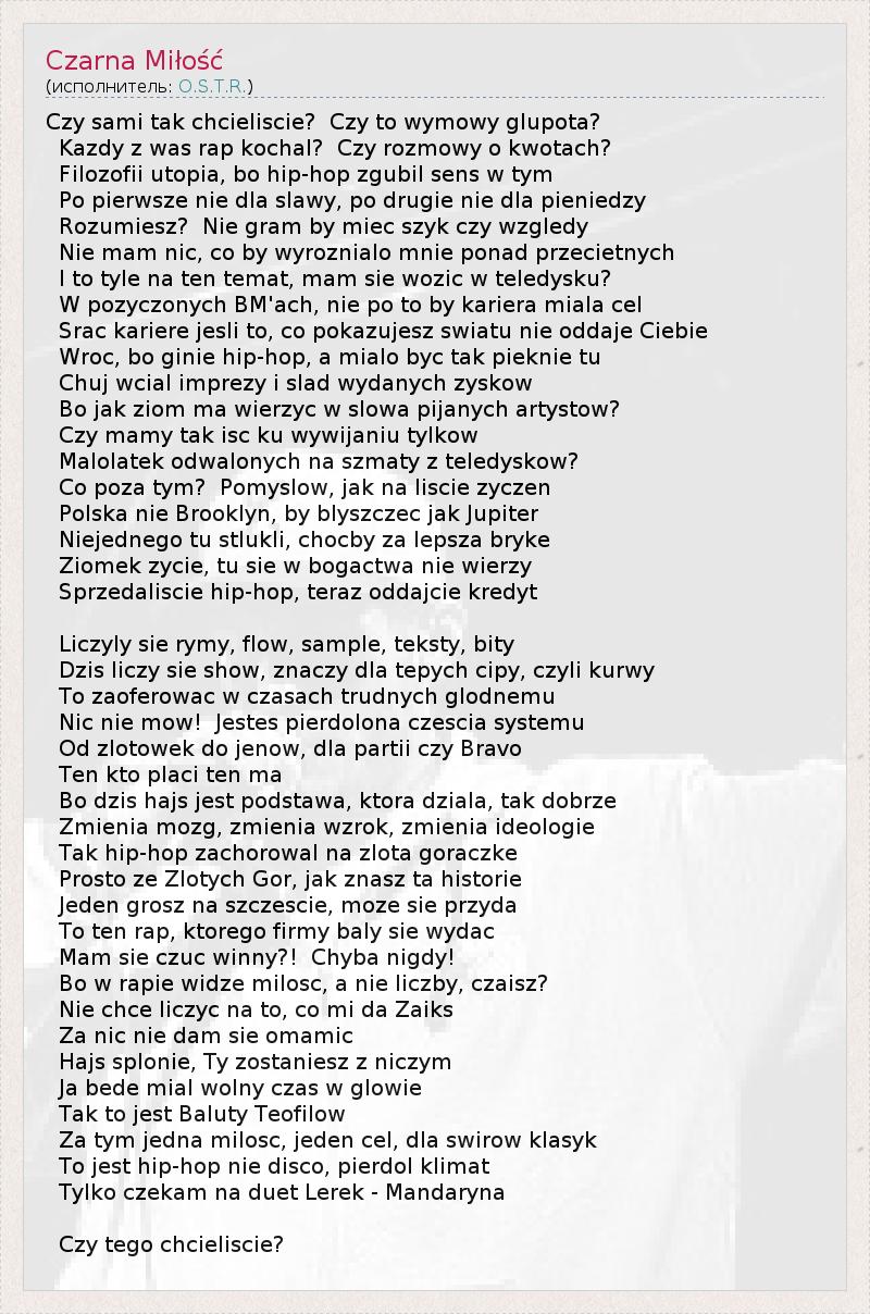 А как ты думаешь, о чем песня "Czarna Miłość" ?