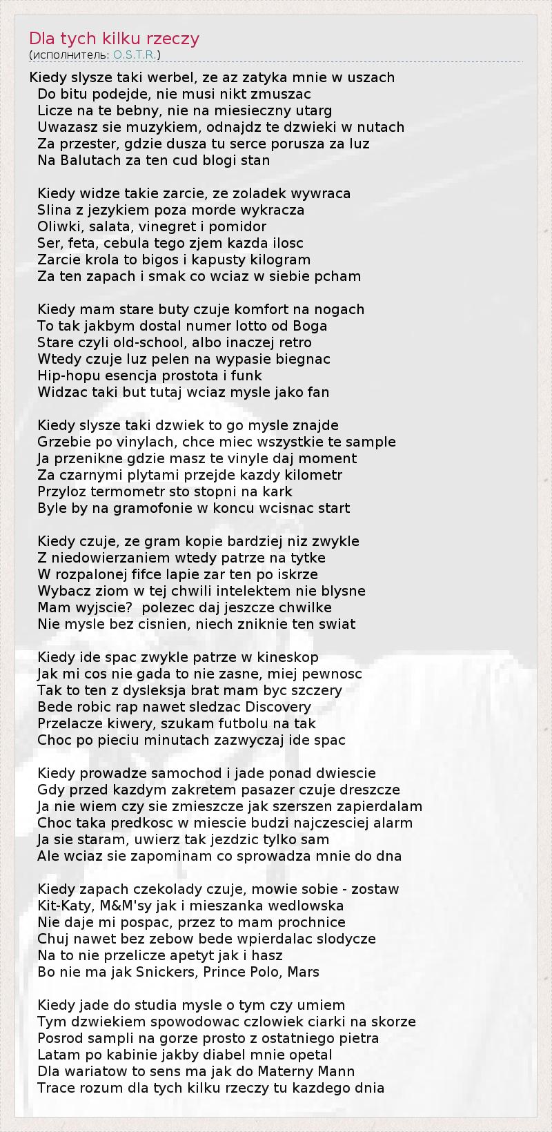 А как ты думаешь, о чем песня "Dla tych kilku rzeczy" ?