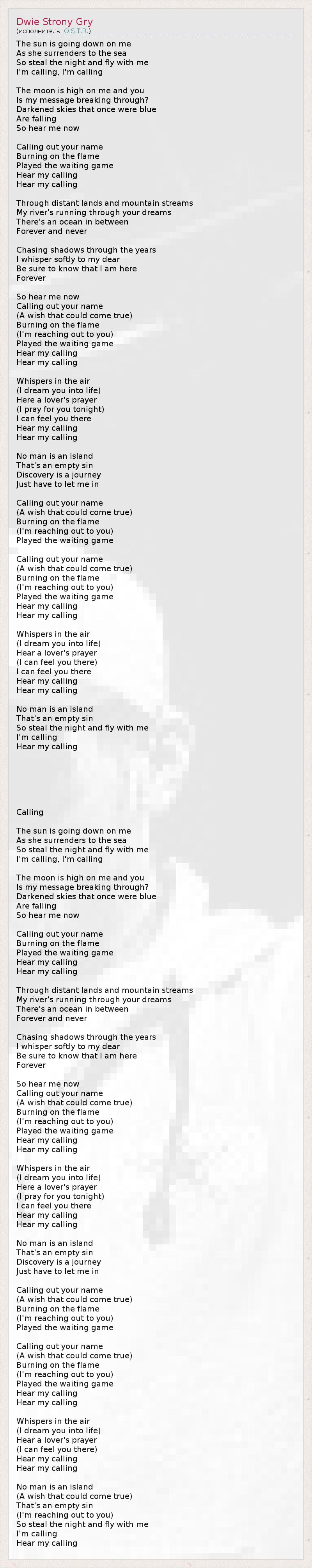 Зов (перевод Надежда Бегемотова из СПб)