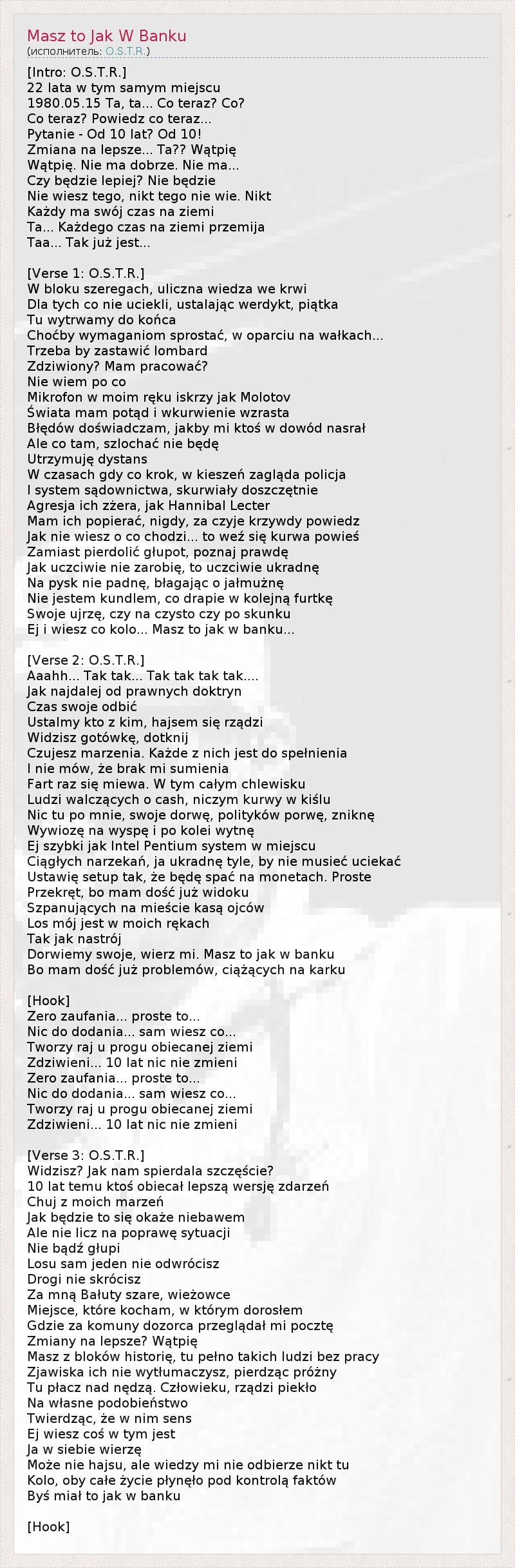 А как ты думаешь, о чем песня "Masz to Jak W Banku" ?