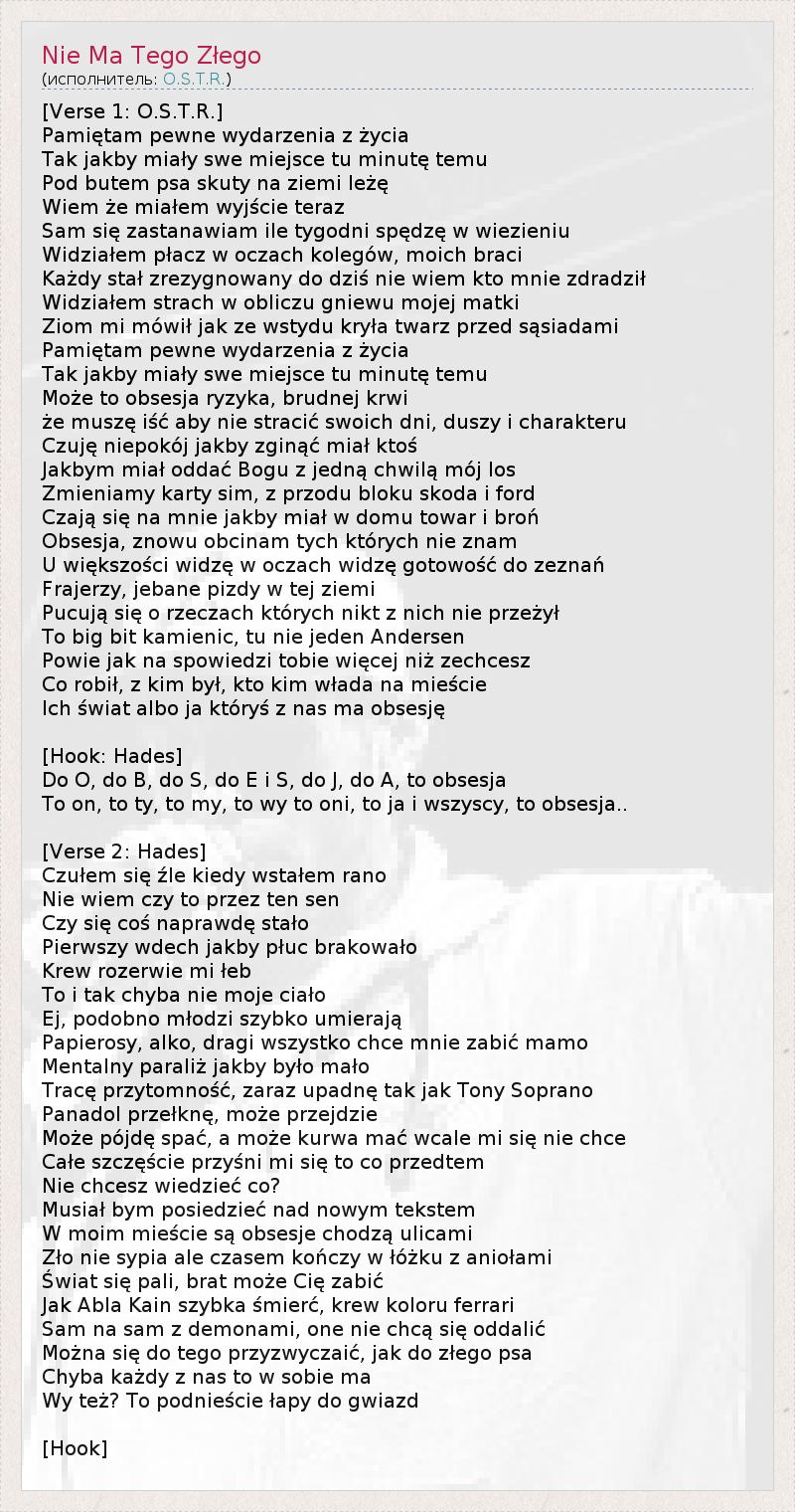 А как ты думаешь, о чем песня "Nie Ma Tego Złego" ?
