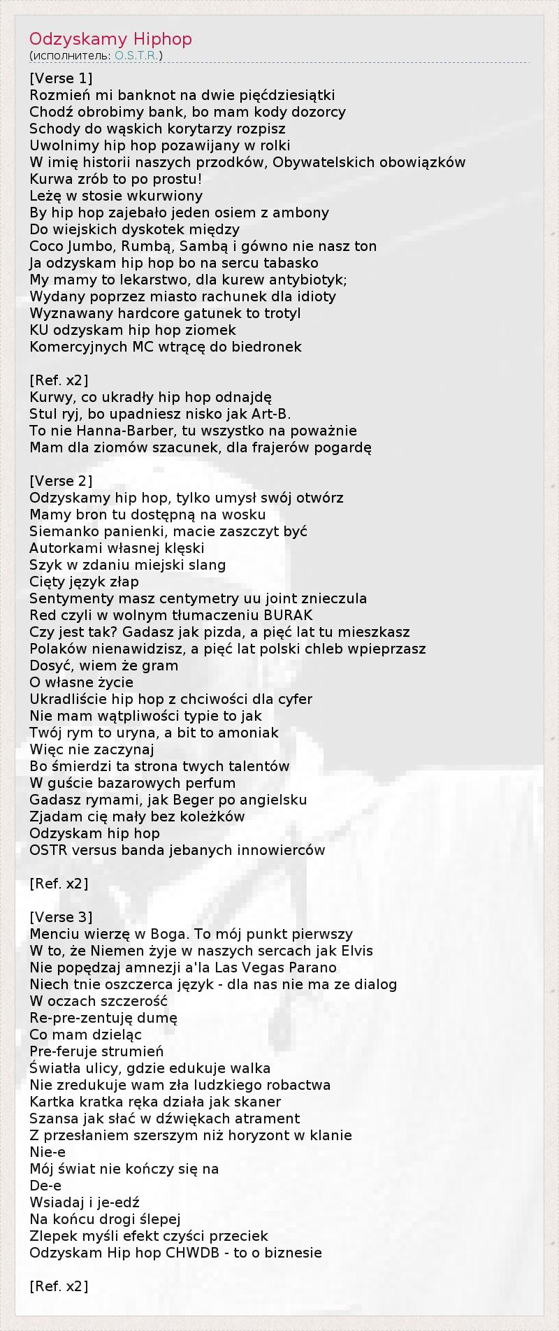 А как ты думаешь, о чем песня "Odzyskamy Hiphop" ?