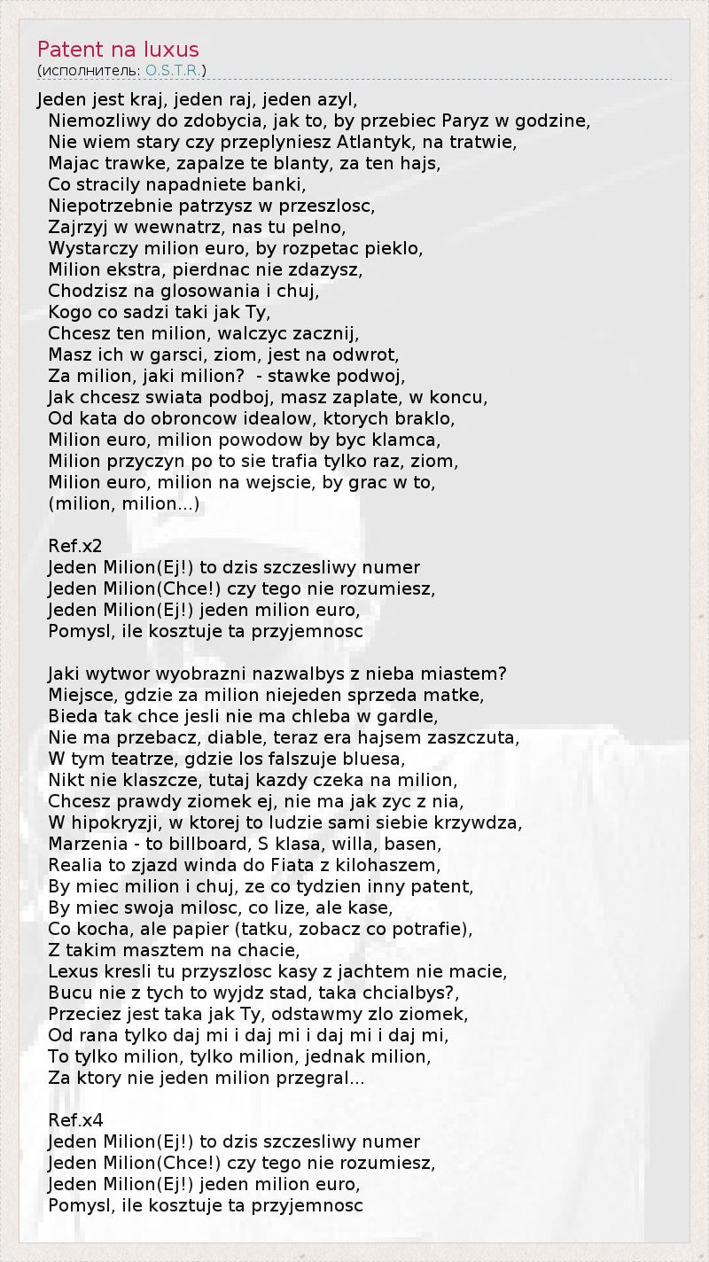 А как ты думаешь, о чем песня "Patent na luxus" ?