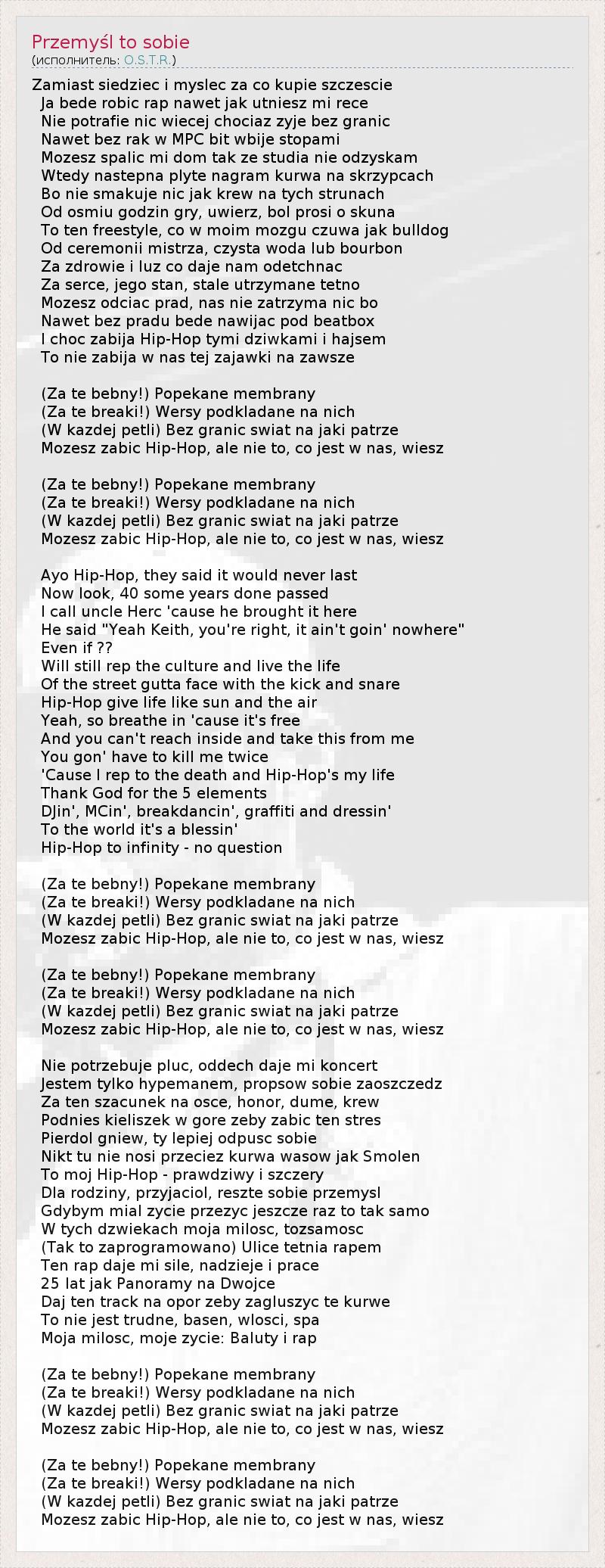 Mozesz zabic Hip-Hop, ale nie to, co jest w nas, wiesz