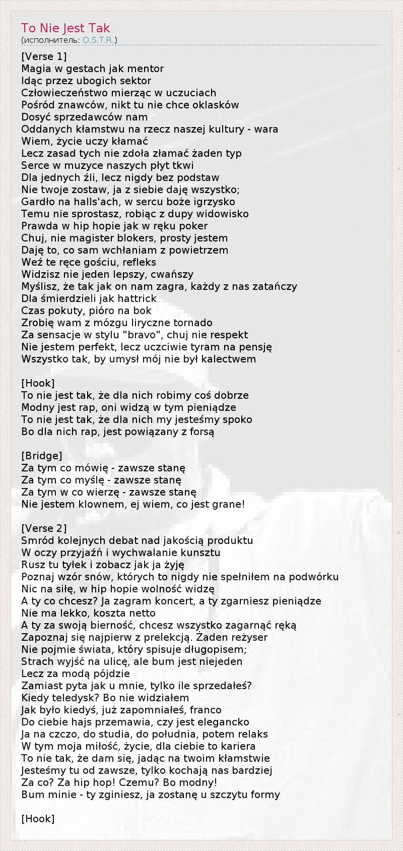 А как ты думаешь, о чем песня "To Nie Jest Tak" ?