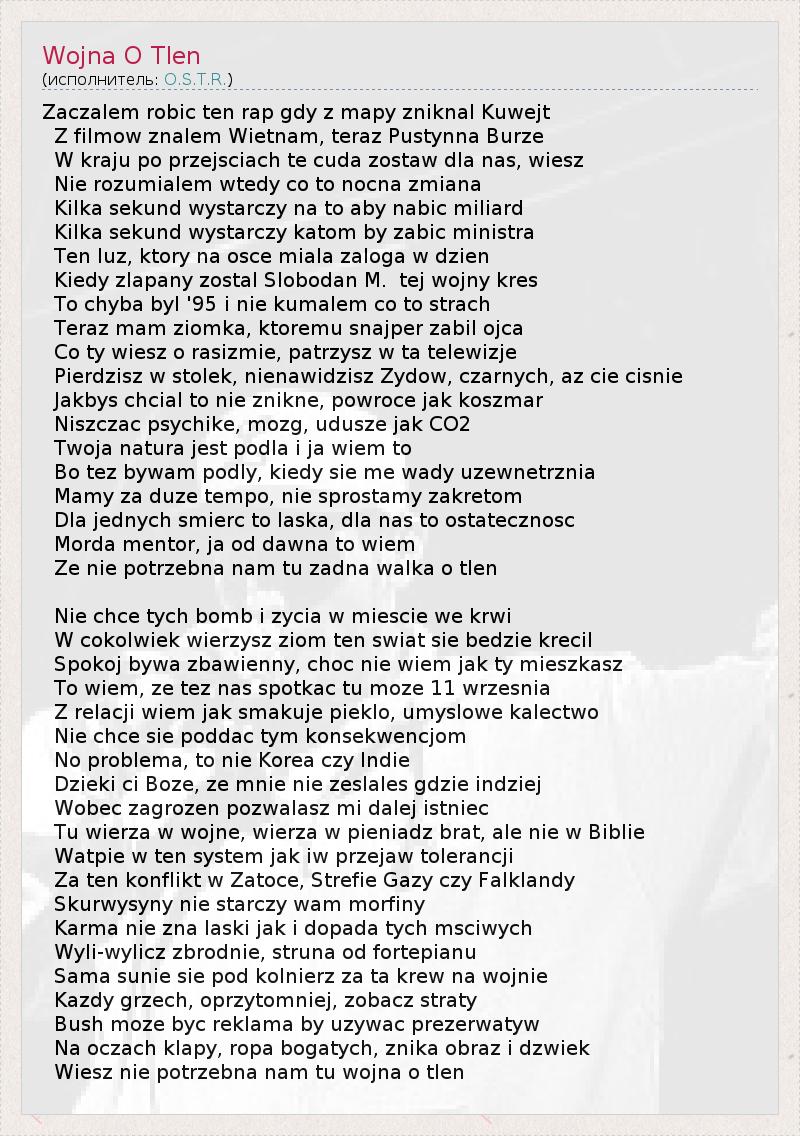 А как ты думаешь, о чем песня "Wojna O Tlen" ?