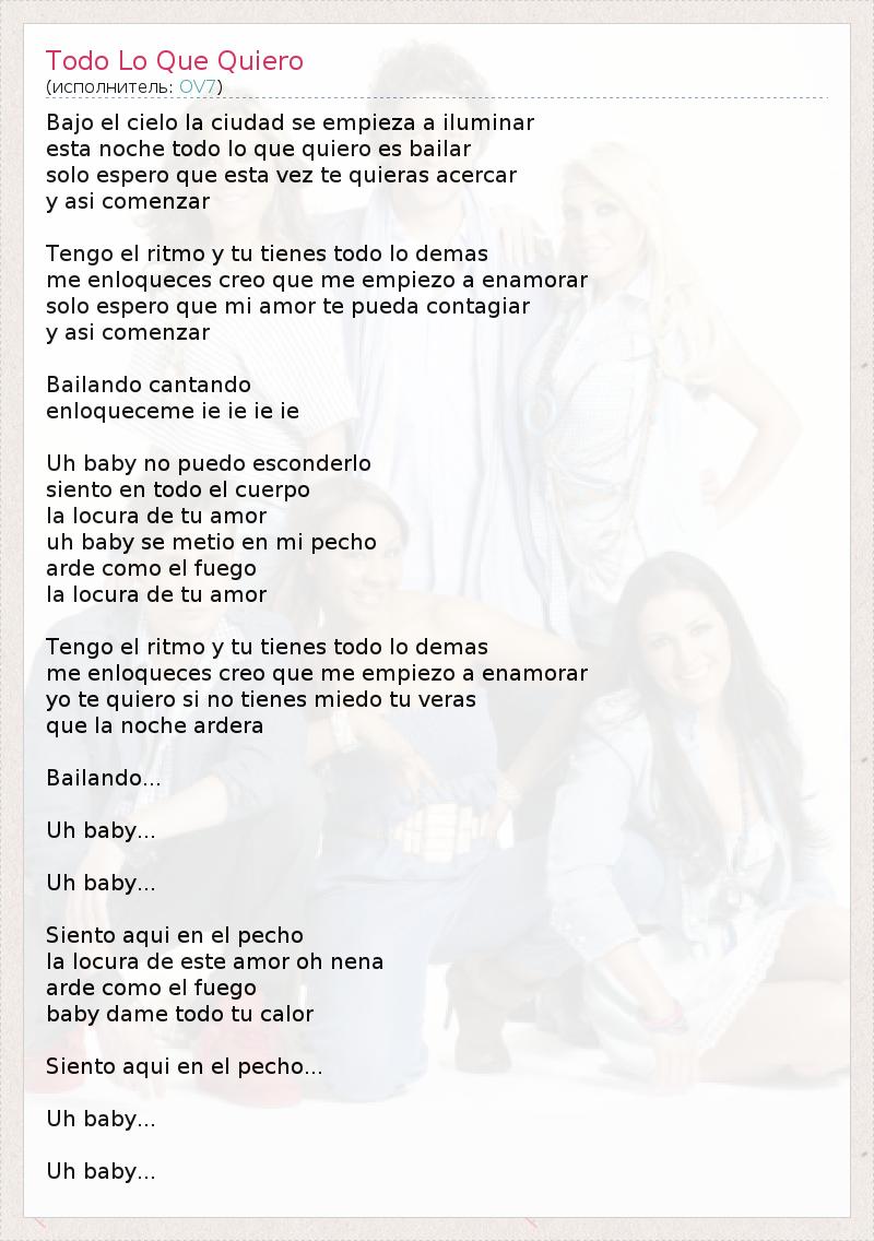 ГлавнаяИсполнителиOV7Todo Lo Que Quiero