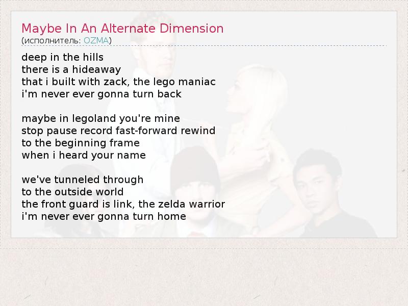 А как ты думаешь, о чем песня "Maybe In An Alternate Dimension" ?