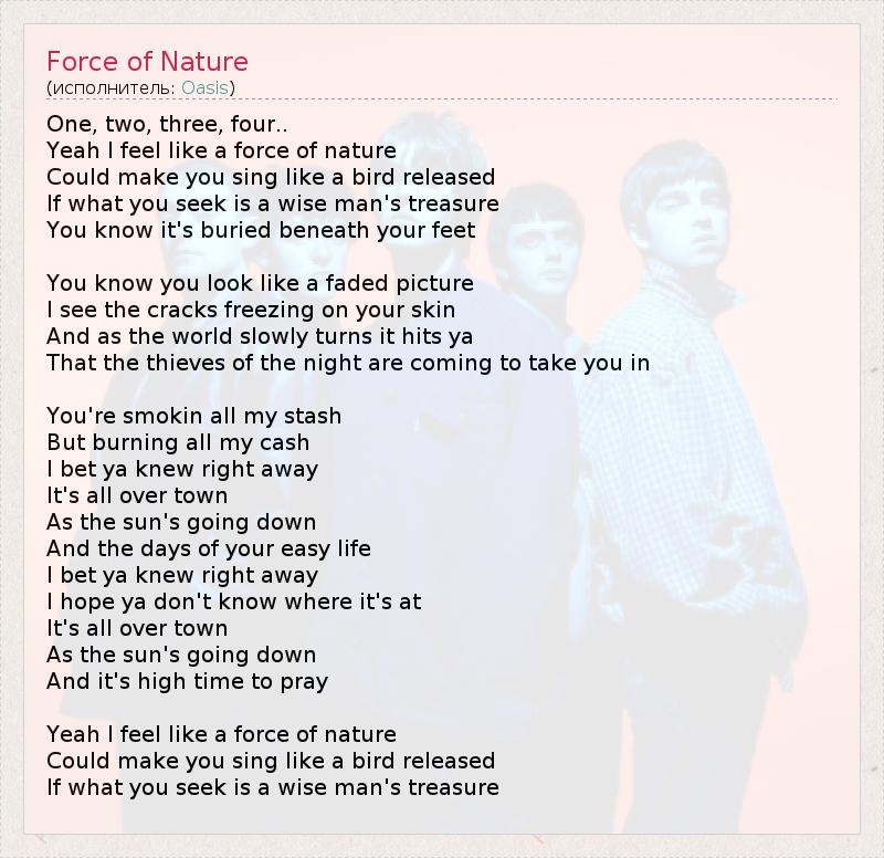 А как ты думаешь, о чем песня "Force of Nature" ?