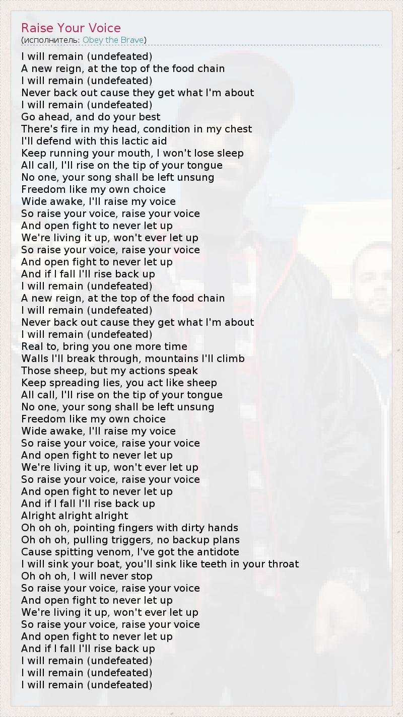 А как ты думаешь, о чем песня "Raise Your Voice" ?
