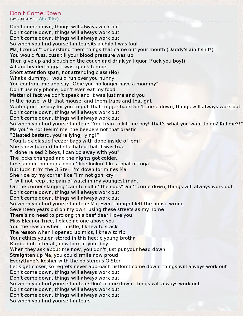 А как ты думаешь, о чем песня "Don't Come Down" ?