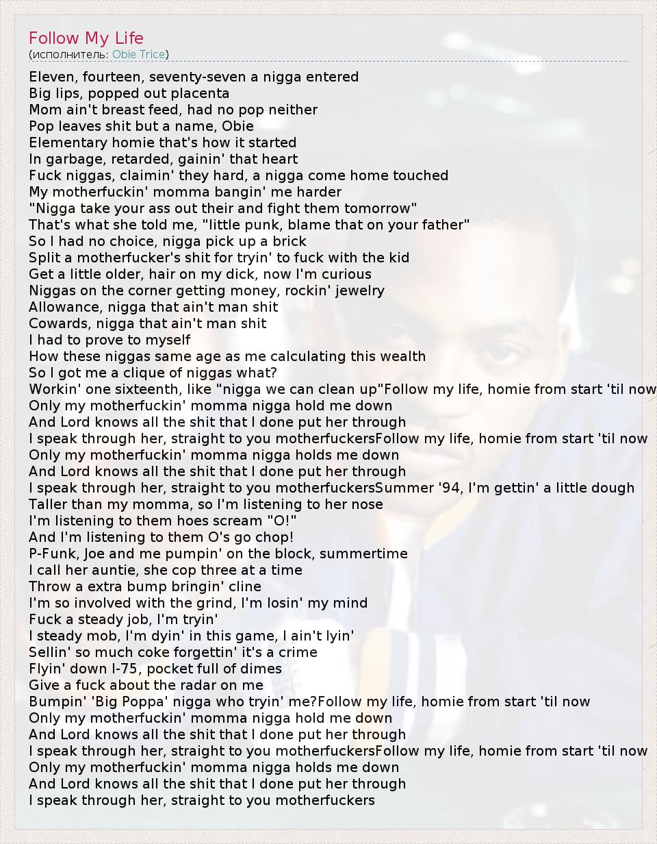 Это интересно:Возможно вы не поверите, но Оби Трайс – это настоящее имя Оби Трайса (об этом и речь идет в сэмпле). Понимаем, что это негоже нормальному рэпперу, но такое звучное имя менять на что-либо глупо. Всю свою жизнь Оби прожил в Детройте, чему, скажем прямо, и обязан своим нынешним положением.Свое приобщение к хип-хопу Трайс начал с банального караоке, подаренного мамой, когда мальчику исполнилось... продолжение