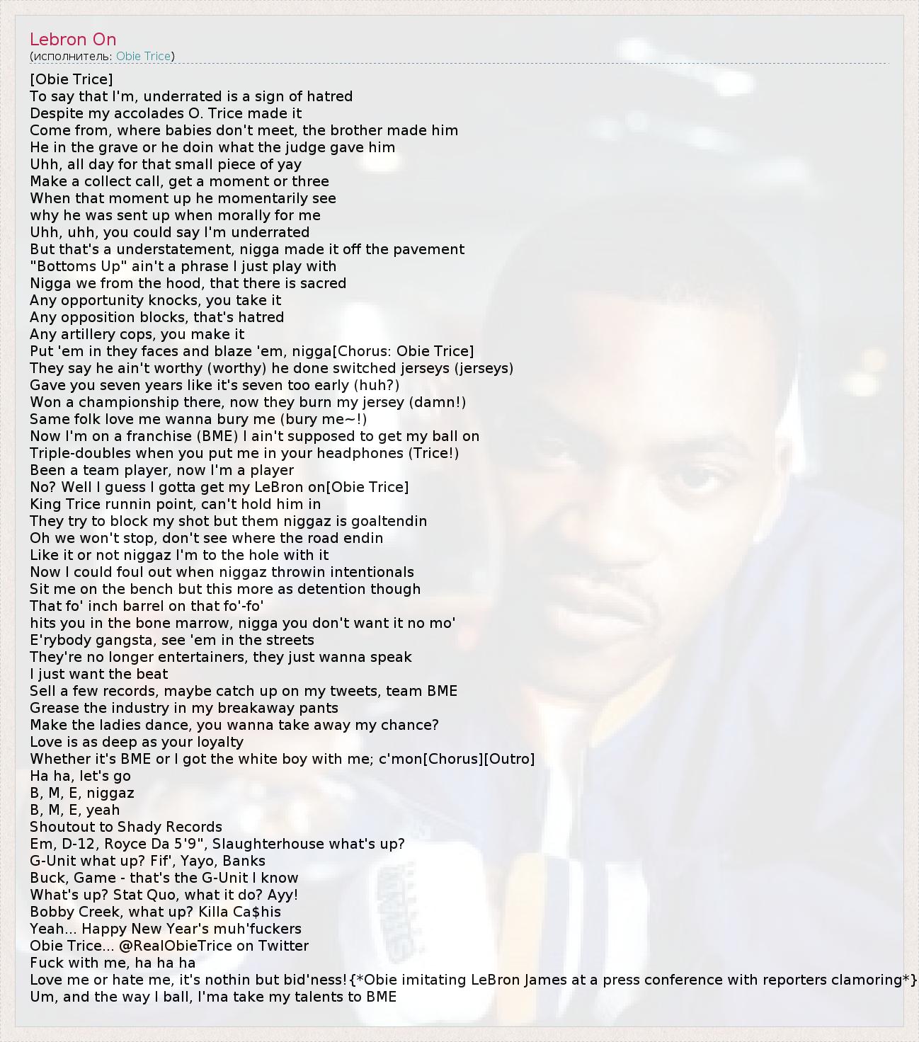 No? Well I guess I gotta get my LeBron on[Obie Trice]